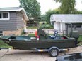 functions as do all the other gauges. Hull is all aluminum with external support and smooth inside, has a beam of 81" boat is built like a tank, any questions please email me your number and i'll call you back, $4900.00 or best, would trade for a couple quads or airboat, Have clear Illinois title for boat and trailer in hand, this boat will be on