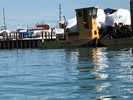 Ex Government boat, built by Feather Craft in 1970 for a government contract. These boats were designed and used as a portable pontoon bridge for troops serving in Vietnam, built entirely of aluminum, two of these boats interlocked their transoms together then bridge sections were placed over the top. Yes I have documentation. This boat stayed stateside and was acquired by the State of