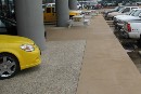 This business owner had a puddle at his entryway, so a thin coat of FlexKrete trowel mix was applied to bring it up to grade, then a double broadcast of red quartz was applied to provide a durable non-skid surface.